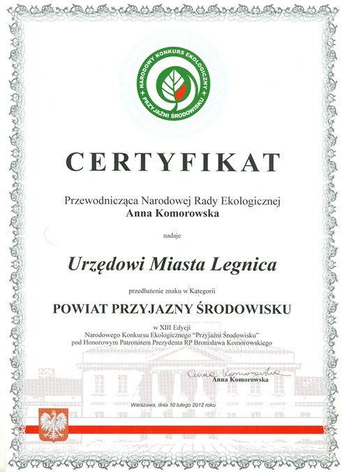 Warto także wspomnieć, że w 2011 r. Prezydent Legnicy Tadeusz Krzakowski otrzymał z rąk Prezydenta RP powołanie na członka Narodowej Rady Ekologicznej II kadencji.
