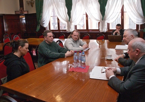 Prezydent Legnicy spotkał się dziś (18 marca br.) w Ratuszu z przedstawicielami Bractwa Rycerskiego Ziemi Legnickiej. Rozmawiano o możliwościach urządzenia w Zamku Piastowskim jego siedziby. Po raz pierwszy temat ten Prezydent Krzakowski podejmował 4 marca w rozmowie z dyrektorem mieszczącego się w zamku Nauczycielskiego Kolegium Języków Obcych, Tomaszem Szczytyńskim. Kolegium działa w części zamku należącej do samorządu województwa, a zatem wszelkie nowe rozwiązania organizacyjne muszą uzyskać akceptację gospodarza tej części obiektu.