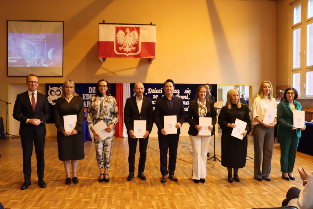 Podczas uroczystości wręczono Nagrody Prezydenta Miasta Legnicy nauczycielom, wychowawcom i dyrektorom szkół za szczególne osiągnięcia w pracy dydaktycznej, wychowawczej i organizacyjnej. Wyróżnienia trafiły do pedagogów reprezentujących wszystkie etapy edukacji – od przedszkoli po szkoły ponadpodstawowe, zespoły szkół zawodowych i branżowych.