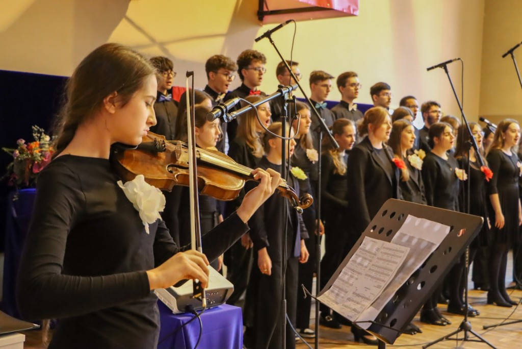 Uroczystość rozpoczęła się wprowadzeniem sztandaru szkoły i odśpiewaniem hymnu państwowego. W programie znalazła się część artystyczna przygotowana przez uczniów II LO – recytacja wiersza Juliana Tuwima w wykonaniu Cezarego Lourenco Diogo i występ szkolnego chóru „Cantus”.