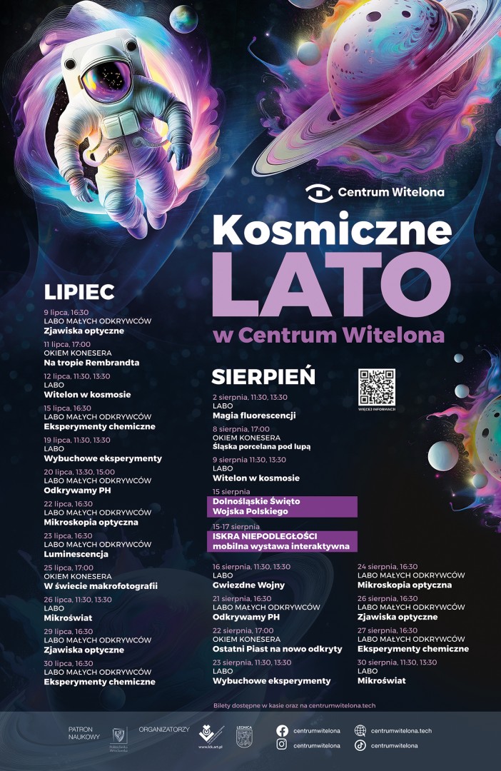 W Centrum Witelona czeka na Was lato pełne nauki, zabawy i pozaziemskich przygód. Nie zabraknie eksperymentów, które rozświetlą mrok i warsztatów, które przeniosą Was na inne planety.