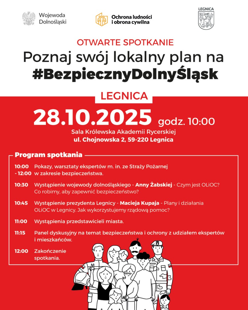 W wydarzeniu udział wezmą Wojewoda Dolnośląska Anna Żabska oraz Prezydent Miasta Legnicy Maciej Kupaj. Spotkanie organizowane jest w ramach inicjatywy #BezpiecznyDolnyŚląsk.