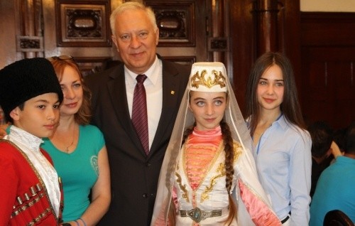 Przedstawiciele przybyłych pod „Kyczerę” zespołów folklorystycznych z Kostaryki, Osetii Północnej, Serbii, Tajwanu, Czech, Słowacji i Polski byli dzisiaj przed południem gośćmi prezydenta Tadeusza Krzakowskiego. Gospodarz miasta życzył im niezapomnianych wrażeń i udanych występów. Także wspaniałych spotkań z mieszkańcami Legnicy i innych miast regionu.