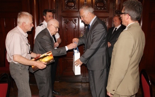 Panu kapitanowi najlepsze życzenia wielu lat w zdrowiu, a także gratulacje złożył gospodarz spotkania, prezydent Tadeusz Krzakowski.