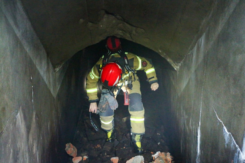 Dzisiejszy przegląd rozpoczął się od wejścia do dwóch szczelin w parku przy Centrum Witelona. Najpierw trzeba było rozkuć młotami udarowymi zamurowane przed laty wejścia. Wewnątrz obiektu stoi około 30-40 cm wody, ale po śladach na ścianach widać, że był on wyższy. Podłoga w tych szczelinach wyłożona jest deskami na legarach. Są one przegniłe i niekompletne. Poza tym w środku zalegają śmieci i trochę gruzu.