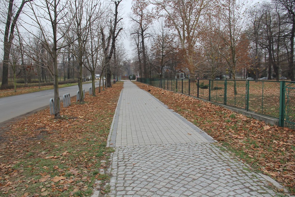 Poprzednia nawierzchnia chodnika została ułożona jeszcze przed II wojną. Naruszone zębem czasu betonowe płyty zostały zdjęte. W ich miejsce położono nową nawierzchnię z kostki typu starobruk, nawiązującej do zabytkowego charakteru parku Miejskiego.
