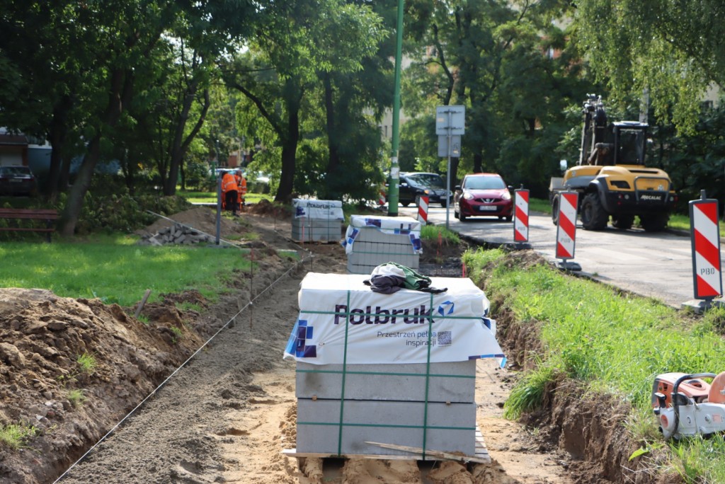 Aktualnie trwają prace związane z remontem ciągów pieszych i obrzeży. Następnie wykonawca przystąpi do przebudowy jezdni oraz zatok postojowych.