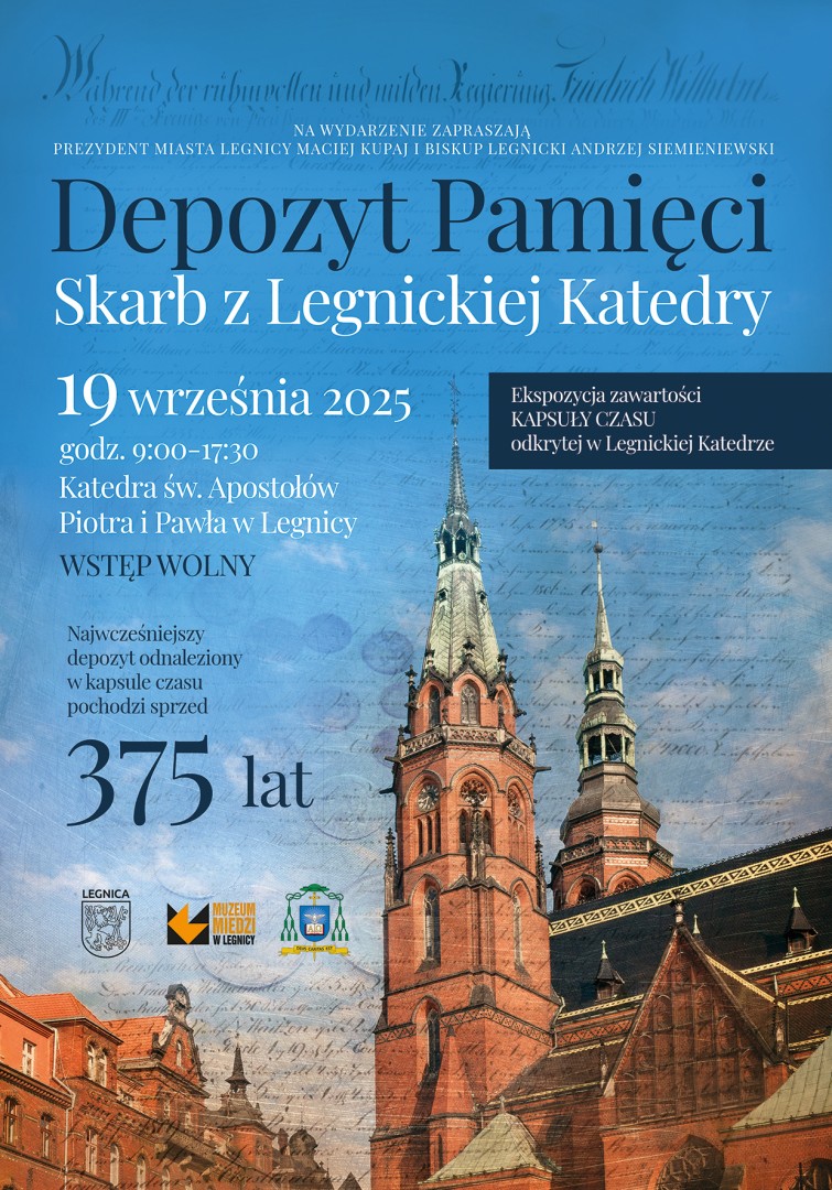 Podczas wydarzenia będzie również możliwość skorzystania z wykładów pracowników Muzeum Miedzi, którzy o godzinie 10:00 i 11:00 opowiedzą o historii odkrycia i znaczeniu znaleziska. Pracownicy muzeum będą obecni w katedrze przez cały czas trwania ekspozycji, odpowiadając na pytania i dzieląc się swoją wiedzą. Przed wejściem do świątyni udostępniona zostanie także plenerowa wystawa historyczna pt. „Skarbnica pamięci. Zajrzyj do kapsuły czasu z legnickiej katedry”, która pozwoli jeszcze pełniej poznać kontekst tego wyjątkowego depozytu. Warto podkreślić, że do współczesnego legnickiego depozytu trafi wspólne zdjęcie mieszkańców wykonane podczas Imienin Ulicy – 13 września. Będzie to pamiątka naszych czasów, przekazana kolejnym pokoleniom w duchu dawnych tradycji.