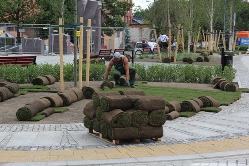 Na Placu Sybiraków ułożone zostały trawniki. Ten piękny zakątek przyciąga ludzi, którzy z chęcią tutaj odpoczywają.