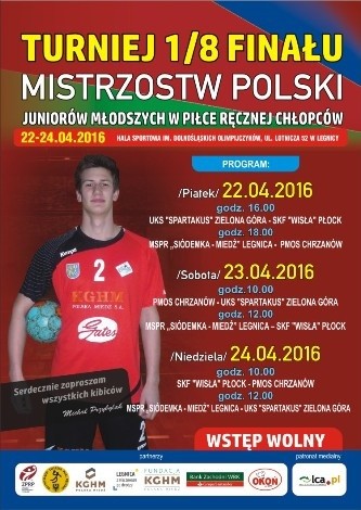 W piątek (22 kwietnia)o godz.16 rozpoczyna się turniej 1/8 finału mistrzostw Polski juniorów młodszych w piłce ręcznej. Rozegrany zostanie (w dniach 22-24 kwietnia) w hali przy ul. Lotniczej.
