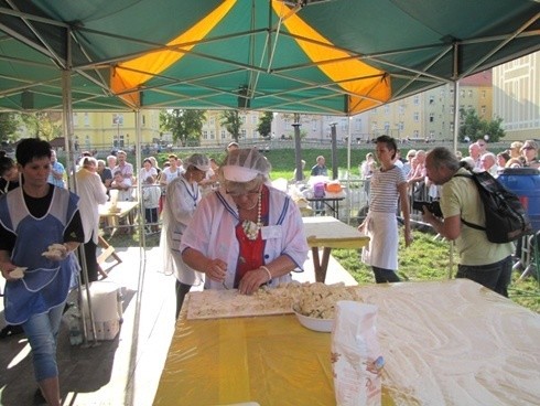 Pierogowy festyn zawsze przyciąga nad Kaczawę tłumy legniczan. Nie inaczej było w ubiegłym roku, kiedy to - kolejny już raz - mistrzynią Legnicy w lepieniu pierogów została Anna Ćwiek z wynikiem aż 366 sztuk.
