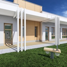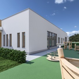 Żłobek zostanie wybudowany wraz z niezbędną infrastrukturą techniczną oraz zagospodarowaniem terenu, w tym: komunikacją wewnętrzną, elementami małej architektury, parkingiem zewnętrznym dla samochodów osobowych, placem zabaw oraz instalacjami zewnętrznymi.
