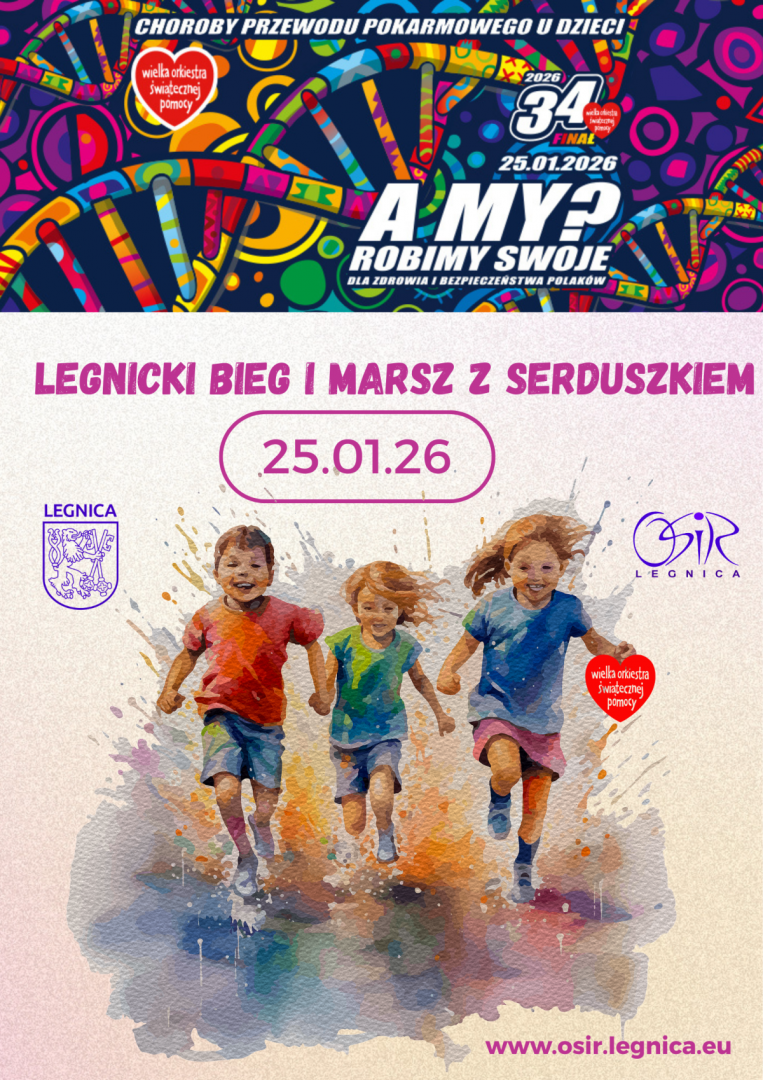 W niedzielę, 25 stycznia, w Legnicy odbędzie się XII Legnicki Bieg i Marsz z Serduszkiem. Wydarzenie organizowane przez Ośrodek Sportu i Rekreacji w Legnicy oraz Miasto Legnica wpisuje się w działania towarzyszące finałowi Wielkiej Orkiestry Świątecznej Pomocy. Tegoroczna edycja wspiera diagnostykę i leczenie chorób przewodu pokarmowego u najmłodszych pacjentów.