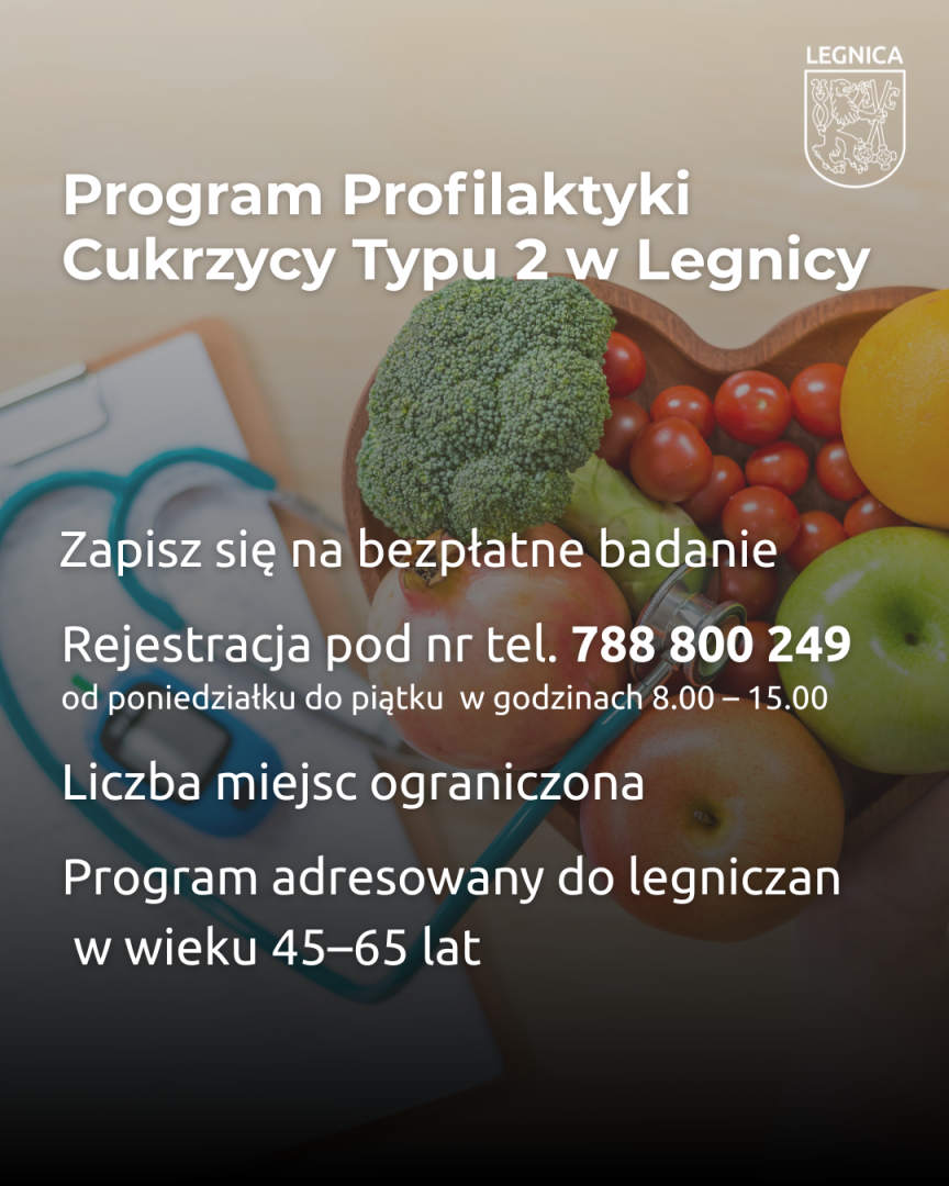 Mieszkańcy Legnicy w wieku 45–65 lat mogą skorzystać z bezpłatnych badań diagnostycznych oraz warsztatów diabetologicznych organizowanych w ramach miejskiego Programu Profilaktyki Cukrzycy Typu 2. Celem programu jest ograniczenie ryzyka zachorowania na cukrzycę poprzez wczesną profilaktykę, edukację zdrowotną i wsparcie specjalistów.