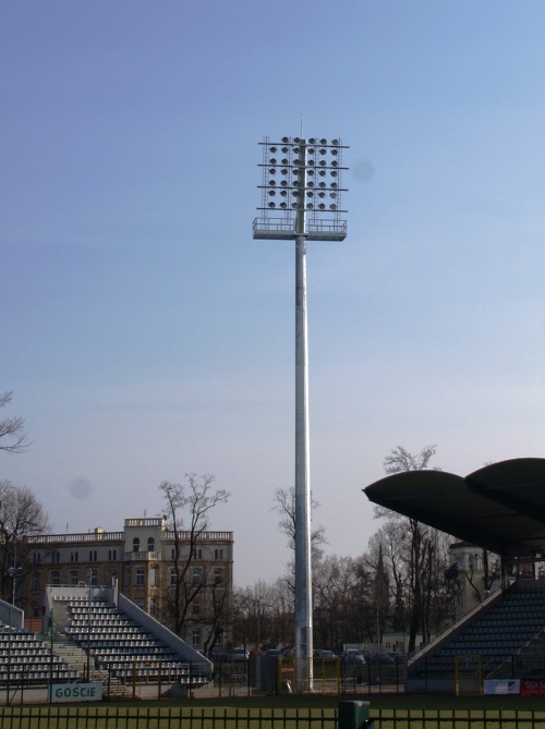 Cztery potężne maszty oświetleniowe ustawione w narożnikach stadionu, wyposażone w platformy z reflektorami, zostały wzniesione w ciągu dwóch dni (10 i 11 kwietnia tego roku). Na zakończenie całego zadania wykonawca miał czas do końca kwietnia.