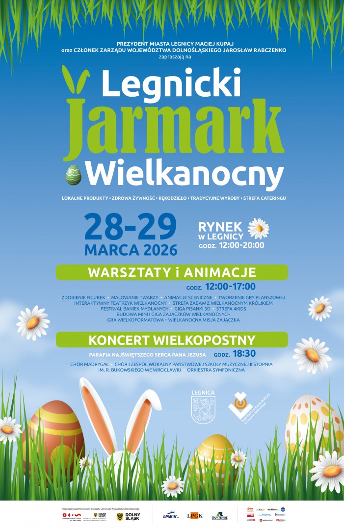 W dniach 28 i 29 marca 2026 r. na legnickim Rynku odbędzie się kolejna edycja Legnickiego Jarmarku Wielkanocnego. Wydarzenie zaplanowano w godzinach 12:00 - 20:00 i – jak co roku – będzie okazją do wspólnego spędzenia czasu w świątecznej atmosferze w centrum miasta.