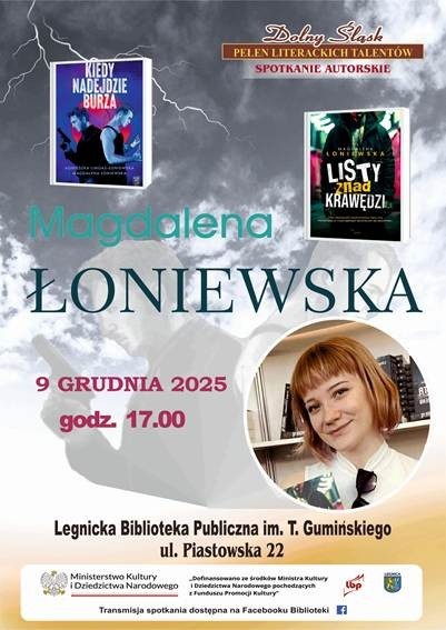 Gościem spotkania będzie Magdalena Łoniewska - rodowita wrocławianka. Od lat działa jako cosplayerka, prowadzi aktywnie konto na Tik Toku i Instagramie, gdzie prezentuje swoje kreacje. Skończyła naukę na kierunku charakteryzacja teatralno-filmowa oraz tanatokosmetologia. Autorka dwóch powieści: „Listy znad krawędzi” oraz duetu napisanego wraz z mamą Agnieszką Lingas-Łoniewską „Kiedy nadejdzie burza”.