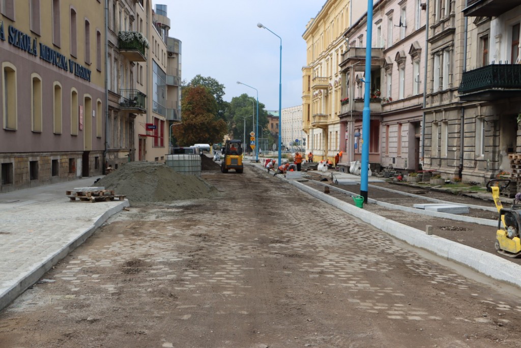 Na zamkniętym fragmencie rozpoczną się w najbliższym czasie roboty rozbiórkowe. Wcześniej wykonano już chodnik od strony ul. Mickiewicza oraz rozpoczęto brukowanie chodników i wyrównywanie kostki kamiennej na jezdni.