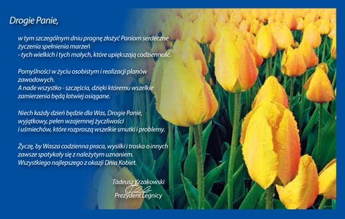 Życzenia Prezydenta Legnicy z okazji Dnia Kobiet
