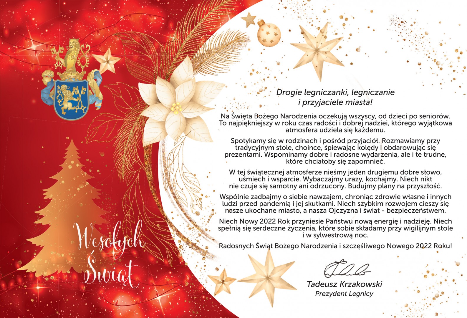 Życzenia świąteczno-noworoczne Prezydenta Legnicy