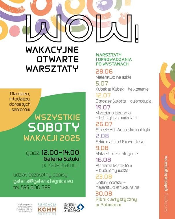 zapraszamy na WOW! – Wakacyjne Otwarte Warsztaty! którym towarzyszyć będą oprowadzania kuratorskie po wystawach, w każdą sobotę wakacji w godz. 12:00–14:00. Cykl skierowany jest do dzieci, młodzieży, dorosłych i seniorów – każdego, kto ma ochotę na kreatywną zabawę w otoczeniu sztuki. Zajęcia łączy wspólna inspiracja: wystawa pokonkursowa 33. Międzynarodowego Konkursu Sztuki Złotniczej „Efekt WOW!”, którą możecie zwiedzać jeszcze do 20 lipca.