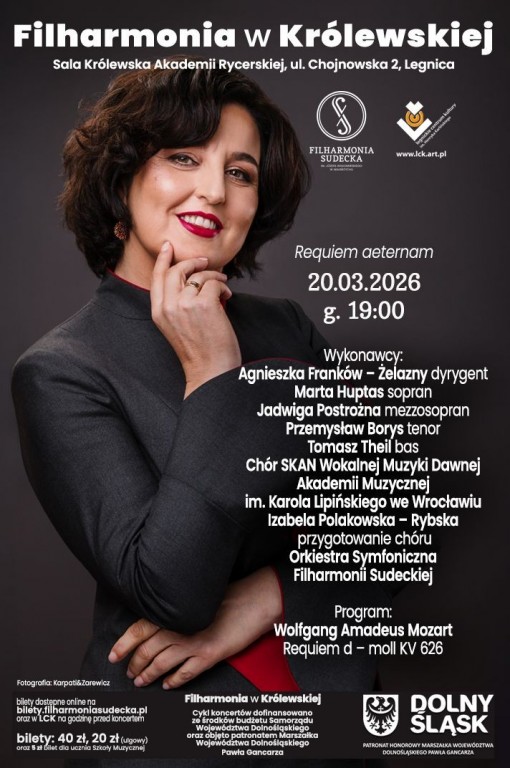 W piątek, 20 marca, o godzinie 18:00 Sala Królewska Akademii Rycerskiej ponownie stanie się przestrzenią spotkania z cyklu „Filharmonia w Królewskiej”. Tym razem publiczność usłyszy genialne „Requiem” Wolfganga Amadeusza Mozarta.